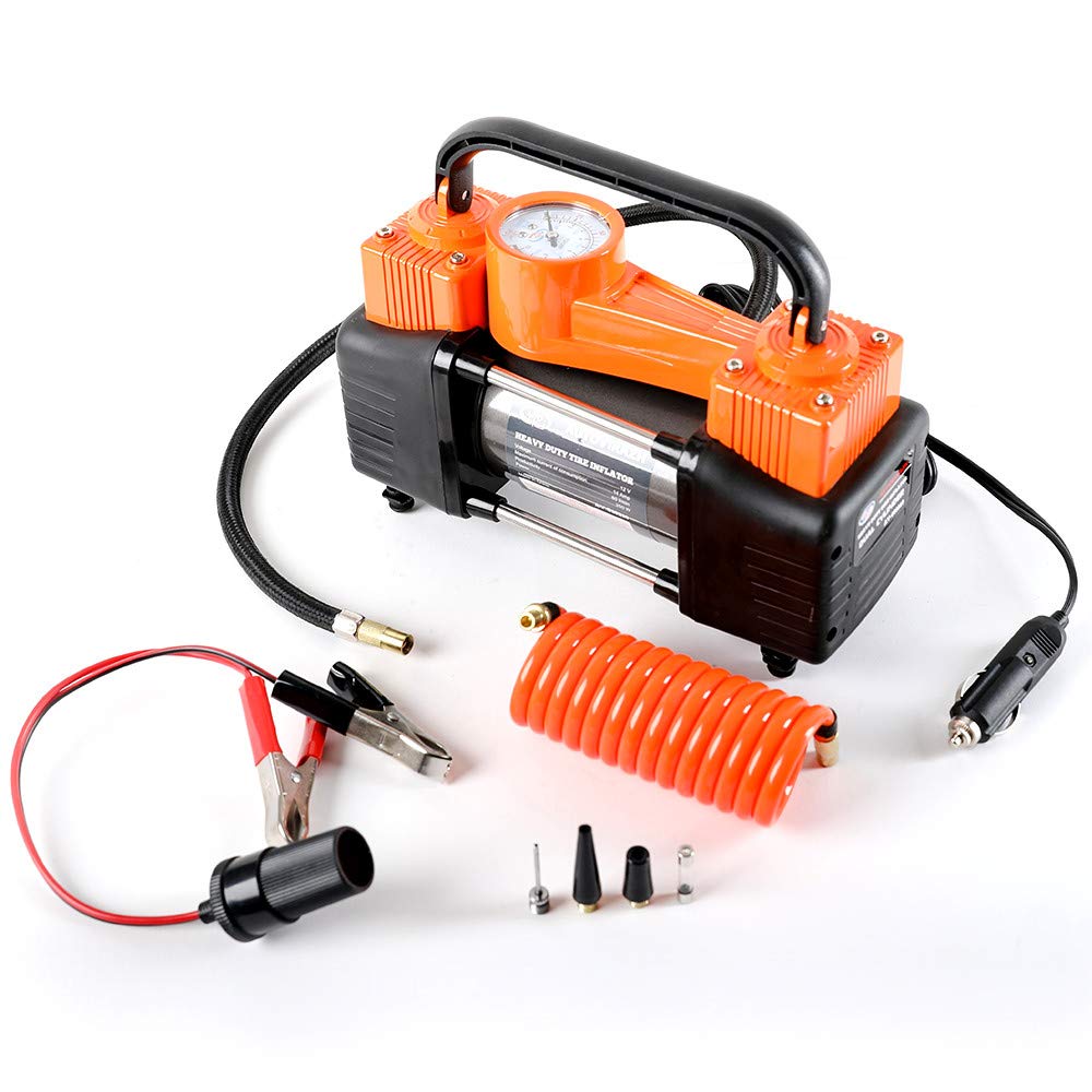 VERSATILE: Our compact mini air compressors are ideal for cars, suv, trucks, minivans, golf carts, inflatable toys, balls and more and with the 3M cigarette lighter switch and the battery clamps which connects directly to your vehicles battery, you can power the tire inflator and other 12-volt devices, like vacuum, coffee maker and more